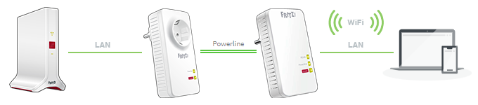 • it is possible to establish a LAN connection to the FRITZ!Repeater from where the FRITZ!Powerline device is being used, for example using the existing cabling in your home.